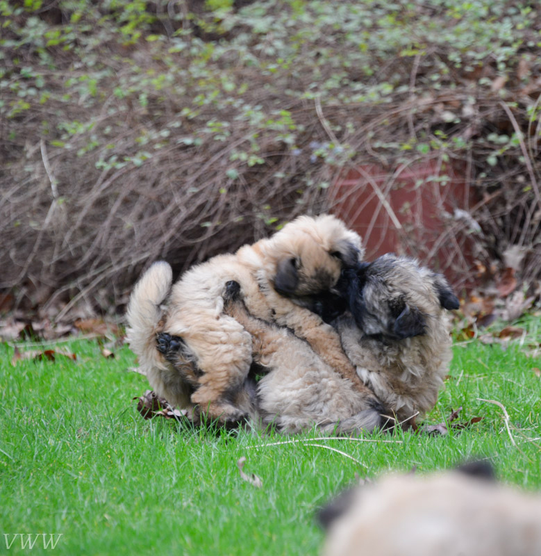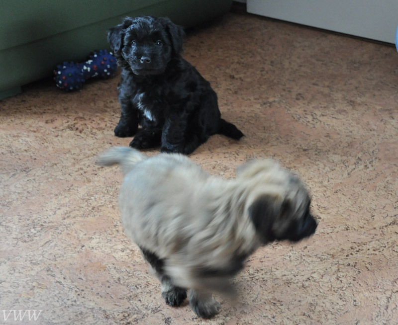 Unsere Zwerge wissen gar nicht wohin mit ihrer Energie, wann immer sie die Möglichkeit haben toben sie mit den kleinen I´s durch den Garten. Die Streicheleinheiten der Besucher genießen sie. Nächste Woche werden die Puscheln vom Tierarzt in Augenschein genommen. Danach steht der Besuch des Zuchtwartes an.