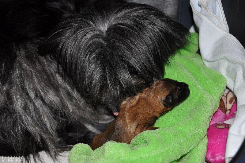 Am 18. Dezember 2016 bekam Ebby (Elster) ihren ersten Welpen, Vater ist Blauregen vom Wissener Wald. Der kleine Rüde wog bei der Geburt 250 g und hat sein Gewicht in der ersten Woche verdoppelt. Er erhielt den Namen Löwenzahn. Unser Quirl Ebby gibt eine wirklich gute Mama ab und kümmert sich liebevoll um den Miniberger.