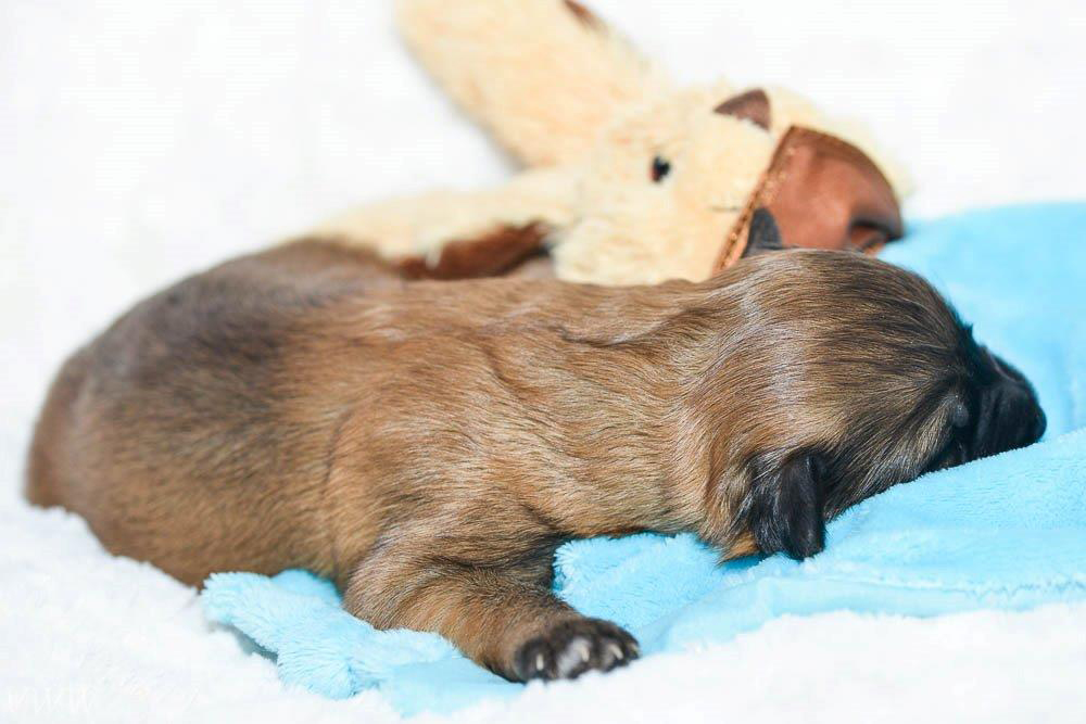 Am 18. Dezember 2016 bekam Ebby (Elster) ihren ersten Welpen, Vater ist Blauregen vom Wissener Wald. Der kleine Rüde wog bei der Geburt 250 g und hat sein Gewicht in der ersten Woche verdoppelt. Er erhielt den Namen Löwenzahn. Unser Quirl Ebby gibt eine wirklich gute Mama ab und kümmert sich liebevoll um den Miniberger.