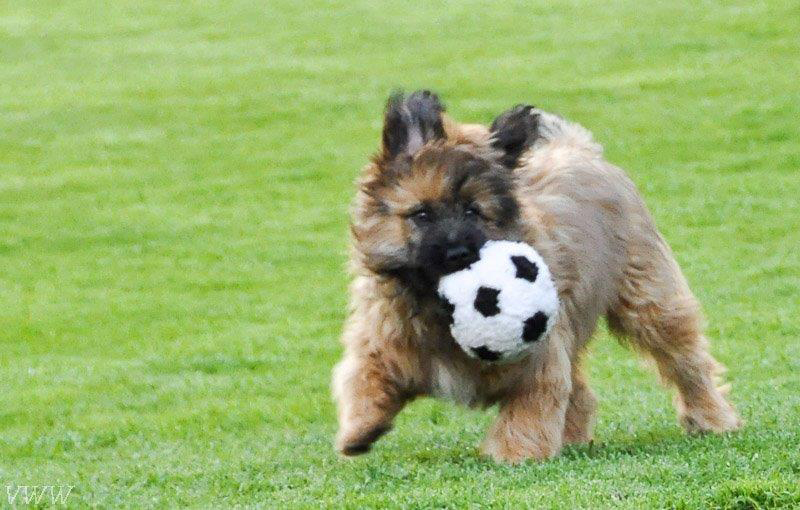 Unser Löwenzahn ist nun schon 5 Wochen alt, inzwischen gibt es neben Mamas Milch auch leckeren Welpenbrei. Auch wenn der Größenunterschied zu den "K's" schon recht groß ist klappt das mit dem gemeinsam Spiele ganz gut. Ebby geht in ihrer Mutterrolle auf, was uns sehr freut.